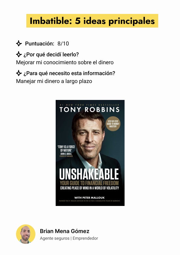Resumen del libro Imbatible (Unshakeable) de Tony Robbins. Comparto mis 5 ideas más relevantes luego de leerlo.