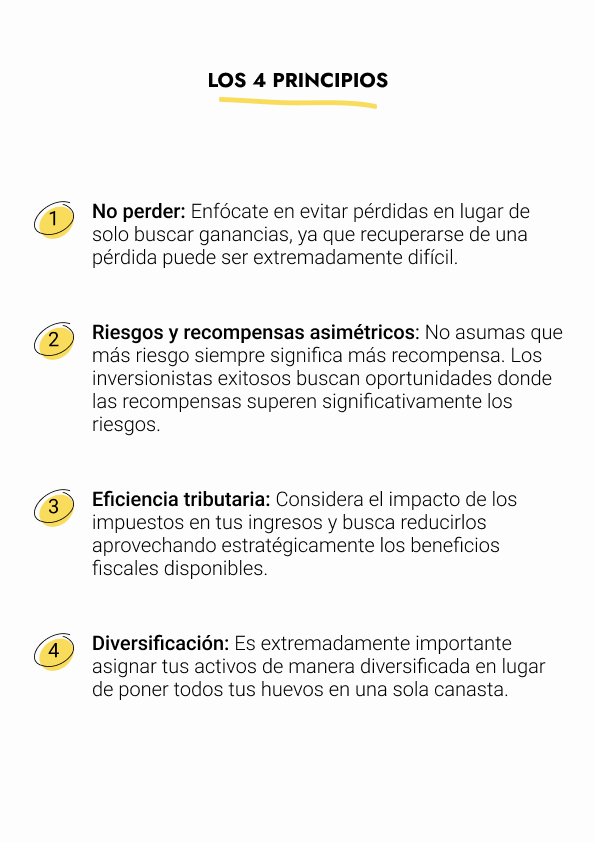 Riesgos y recompensas asimétricos: No asumas que más riesgo siempre significa más recompensa. Los inversionistas exitosos buscan oportunidades donde las recompensas superen significativamente los riesgos.