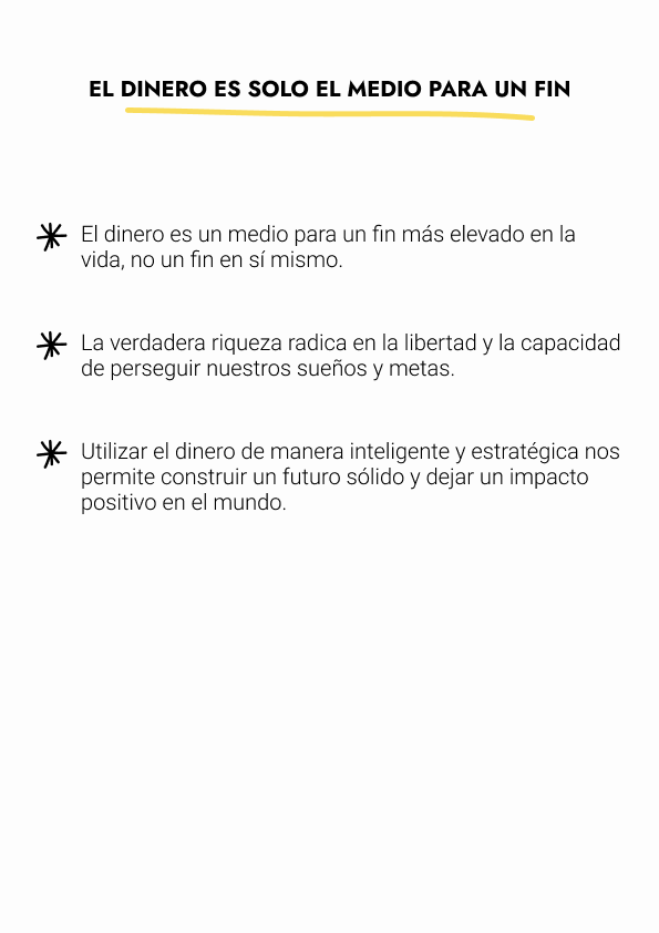 El dinero es un medio para un fin más elevado en la vida, no un fin en sí mismo.