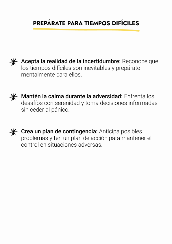 Acepta la realidad de la incertidumbre: Reconoce que los tiempos difíciles son inevitables y prepárate mentalmente para ellos.
